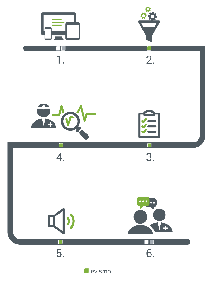 Als Beispiel der evismo CardioFlex® Service-Ablauf.